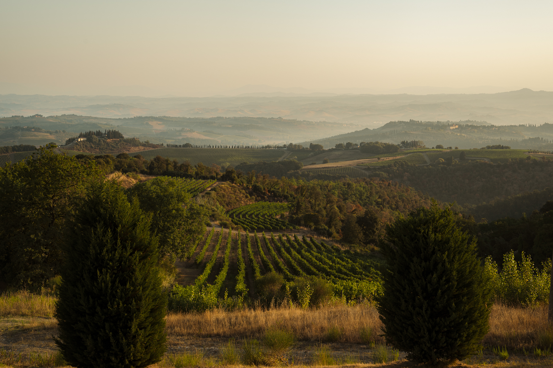 Most of the vineyards have southeastern exposure. Only two small plots (Merlot and Vernaccia di S.G.) face northwest. The plantings were made between 1999 and 2001 all spurred cordon with 5,000 vines per hectare.