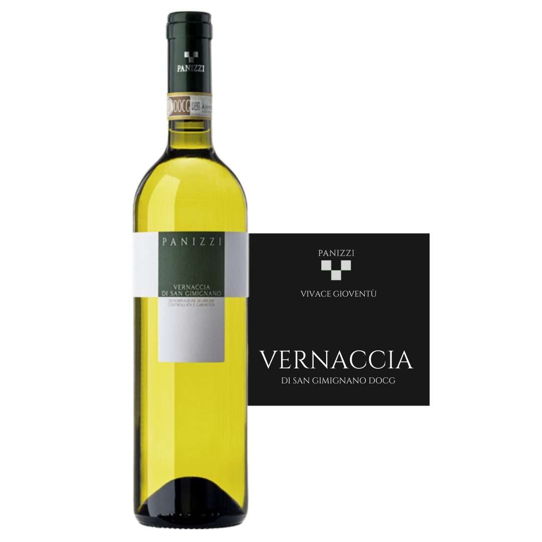 Con questa etichetta è iniziata la storia di Panizzi nel 1989. La Vernaccia di San Gimignano nella sua versione fresca e di pronta beva. Sorso dinamico e versatilità a tavola grazie alla tipica freschezza sostenuta dalla struttura caratteristica di questo vitigno. È l’interpretazione naturalmente attuale di un vino antico e carico di storia.